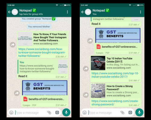 For instance, my friend shared a document on GST in one of my WhatsApp group. At that time I was busy with some other work, but I want to see that document. So, what I did, I forwarded that document in my group, Notepad. Now, I don’t need to find that one document in that group, which is super active.