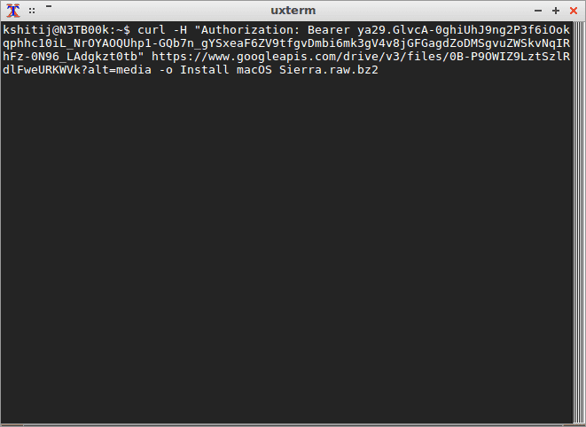 In your command, replace “XXXXX” with the file ID from above, “YYYYY” with the access token from above, and “ZZZZZ” with the file name that will be saved (for example, “myFile.mp4” if you’re downloading a mp4 file).