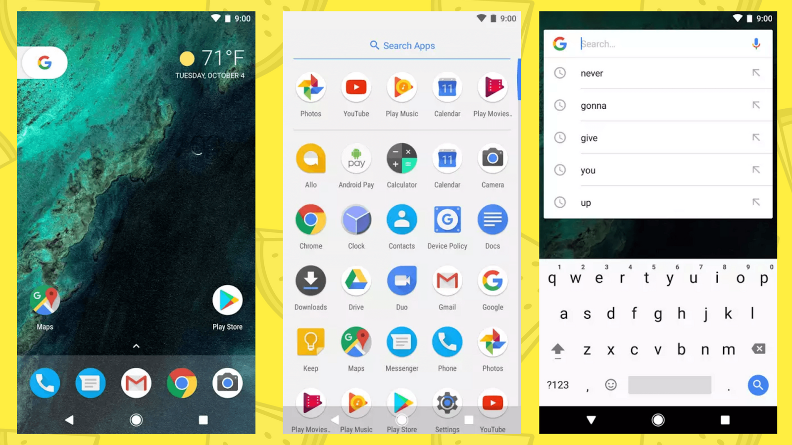 Use the search bar to find anything from apps to files on your device and like Pixel Launcher, it has swipe-up to open App Drawer which has become a trend nowadays.